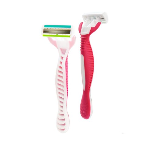 มีดโกนสำหรับสุภาพสตรีสีชมพูแบบใช้แล้วทิ้งใบมีดคู่เป็นมิตรต่อสิ่งแวดล้อม